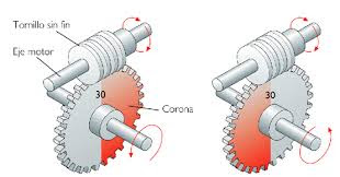 Este mecanismo permite transmitir  un movimiento giratorio entre dos ejes que se cruzan perpendicularmente, estos ejes se llaman árboles,un motriz al cual se le realiza el  movimiento y otro denominado útil quien resive el movimiento a través de un piñón,el sin fin es parecido a un tornillo y sus dientes se unen con el del piñón para lograr movimiento.